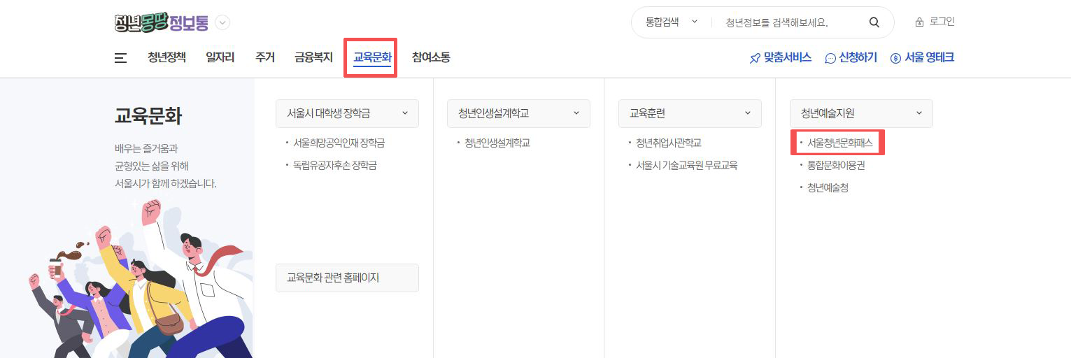 서울 청년문화패스는 20세부터 23세의 청년들에게